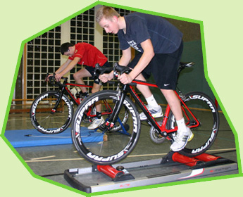 Trainingsrolle und Rennräder stehen zur Verfügung. Die Schülerinnen und