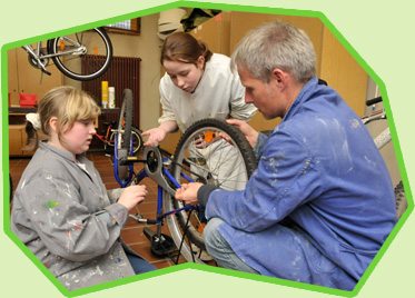 Eine schuleigene Fahrradwerkstatt bietet den Schülern und der