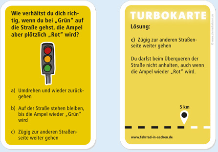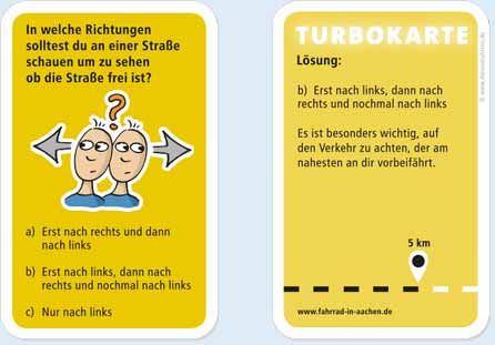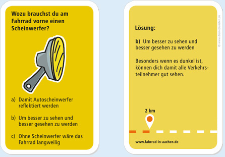 wurde unterstützend ein Radfahrquiz als Kartenspiel entwickelt. Unten auf